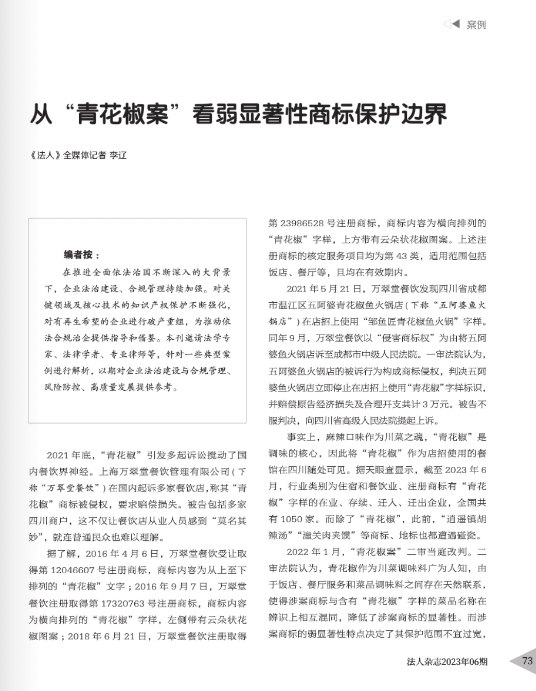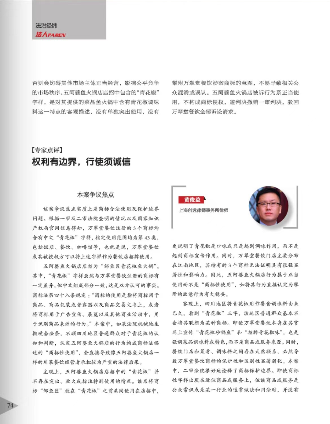 聊城辉知简讯 | 辉知队黄俊益律师应“法治日报”旗下杂志邀请,就“青花椒”案发表专家点评